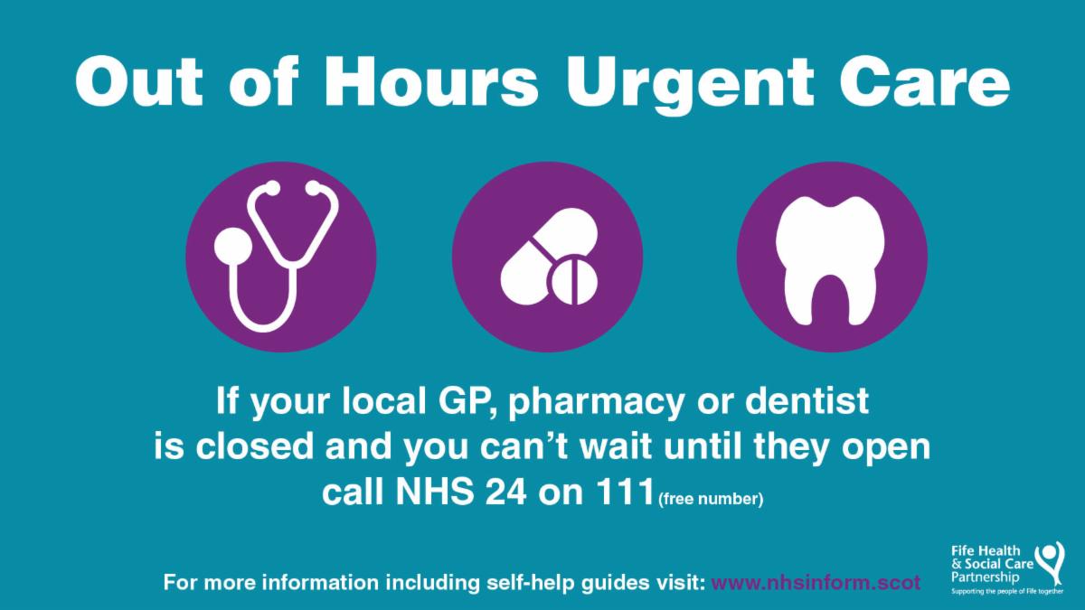 From 04 November 2019, a more flexible, integrated and multi-disciplinary team approach, working from three centres and supported by home visits will cover out-of-hours Urgent Care in Fife.