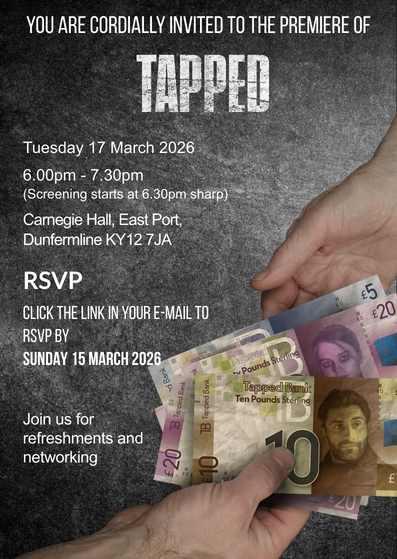 Tapped has been developed through a partnership between Fife Voluntary Action, Kingdom Community Bank, City of Dunfermline Area Committee (Fife Council) and Scottish Illegal Money Lending Unit, working alongside YouthLink Scotland. Central to the project has been the involvement of young people from the Dunfermline area, who were supported to script, film and edit the production, as well as shape the themes and content of the accompanying learning toolkit.